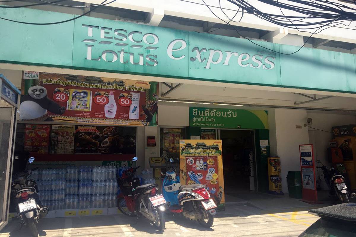 Tesco Lotus has also these little Tesco Lotus Express supermarkets in Phuket which you can find if you’re on the lookout for them. They have one in Surin. You can expect to find a good sampling of the most bought items from the big Tesco Lotus supermarkets at these Express shops. These are not small stores either, they’re about eight times the size of a 7-11, so chances are good that they will have what you need.